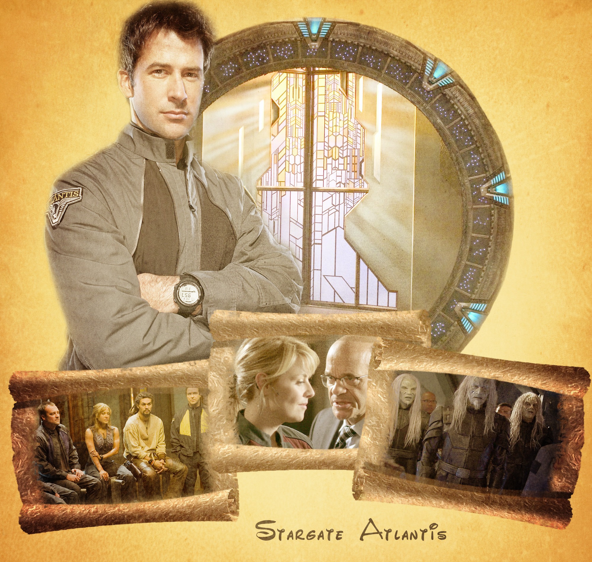Название: Stargate Atlantis Автор: taty@nka Форма: коллаж Пейринг/Персонажи: персонажи из сериала ЗВА Категория: джен Рейтинг: G Размер: 2000х1900 Исходники: капсы и промо-фото
