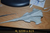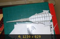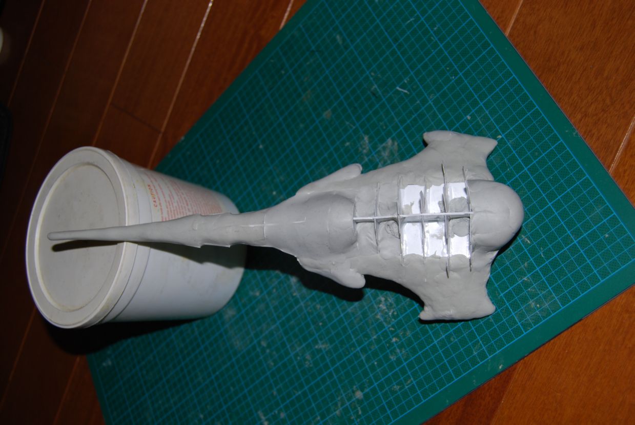 Скелет стрелы теперь полностью покрыт шпатлевкой. Далее делаются детали, которые охватывают кабину пилота.