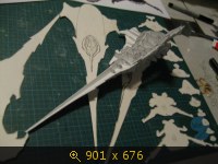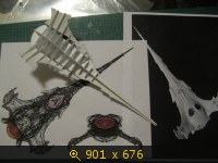 Еще один вариант стрелы своими руками.))Источник http://www.foundation3d.com/forums/showthread.php?t=1528 . Спасибо WraithWorshipper за ссылку.Модель 11 см в длину, масштаб 1:32. Используется некая сетка Микала (не знаю, возможно я не правильно поняла)) Делается скелет стрелы.